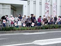 開会式会場への沿道に日の丸で天皇皇后両陛下のお出迎えが。
