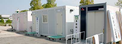 愛媛の自然あふれる会場にはオーディーテックの多目的トイレ(バリアフリートイレ)などが各地に設置されました。
